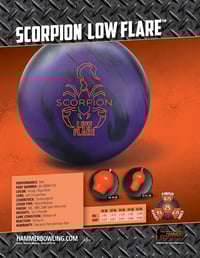 Hammer is always looking at adding balls to the line to fill gaps and make it the game’s most versatile and complete line. Low flare cores have been a staple for Hammer, and currently, the Envy Tour balls are extremely popular, but we haven’t had a symmetric low flare in a while. We are excited to add the Scorpion Low Flare to the lineup. Removing the flip puck from the LED 3.0 core found inside the Scorpion Sting lowered the differential and flare potential, making this ball a perfect fit for Hammer. The Scorpion Low Flare will be a smooth and predictable ball motion, driven by the core numbers and the Semtex Hybrid cover, finished at 2000 Siaair. All styles will love the Scorpion Low Flare; higher rev rates will use it on anything, and lower rev rate players will find it useful on tricky conditions, and when the lanes are transitioning, either way, you won’t want to show up to bowling without one.